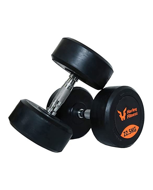 - Harley Fitness Premium Genuine Rubber Coated Bouncing Round Dumbbells 22.50KG Pair
